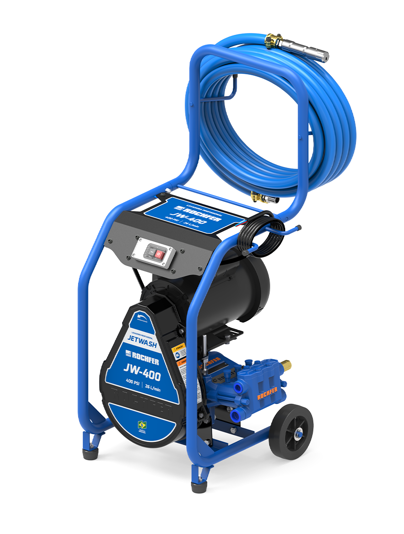 As Lavadoras JETWASH são de outra categoria em relação às lavadoras domésticas. Possuem alta vazão e pressão ideais para limpezas profissionais e rápidas, garantindo desempenho contínuo e robustez superior mesmo em uso intenso.